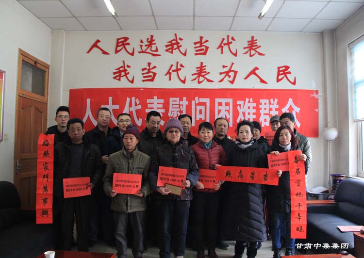 2018年2月7日上午,在2018年新春佳節(jié)即將來臨之際,甘肅省慈善總會(huì)榮譽(yù)會(huì)長、安寧區(qū)人大代表、甘肅中集集團(tuán)董事長周啟濤親自安排部署,并委托集團(tuán)公司黨委委員魏建峰、安 康兩位同志親自前往安寧區(qū)十里店街道辦事處,在街道黨工委副書記、人大工委主任梅鵬飛等領(lǐng)導(dǎo)陪同下,開展愛心送溫暖行動(dòng),為街道10戶特困家庭送上新年的祝福和慰問金。
