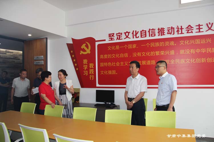 調(diào)研組一行首先參觀了集團公司黨委宣傳陣地、黨員活動室、談心談話室、閱覽室、健身中心等,通過查看黨支部標(biāo)準(zhǔn)化建設(shè)資料、聽取專題工作匯報和現(xiàn)場交談后,馬振亞副部長對甘肅中集集團黨委創(chuàng)新工作思路給予高度評價,重點對集團公司黨委黨支部建設(shè)標(biāo)準(zhǔn)化、樓宇黨建工作特色和亮點,特別是中集理想國際寫字樓樓宇聯(lián)合黨支部通過街道、城市社區(qū)“串聯(lián)”城市基層黨組織,創(chuàng)新城市基層黨建發(fā)揮的橋梁紐帶作用給予了高度評價,馬部長指出“甘肅中集集團樓宇黨群服務(wù)中心在城市基層黨建工作中開創(chuàng)了活動共聯(lián)、資源共享、信息共用、文化共興創(chuàng)新方式,打造了特色示范帶動,為全省城市基層黨建提供了好的經(jīng)驗和做法。在下一步工作中,要繼續(xù)加強黨支部建設(shè)標(biāo)準(zhǔn)化,創(chuàng)新活動載體,不斷從中汲取科學(xué)智慧和理論力量,更好的總結(jié)經(jīng)驗并進行推廣,為全省非公企業(yè)和城市基層黨建工作做好榜樣標(biāo)桿。”