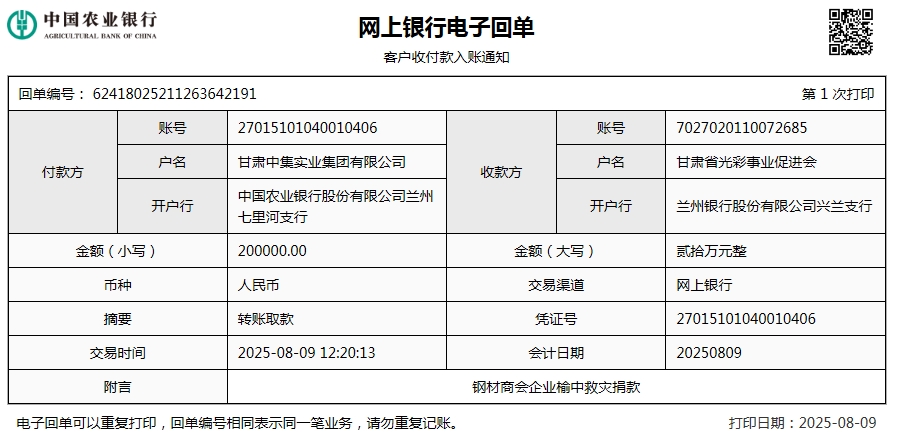 災(zāi)情發(fā)生后,甘肅中集集團迅速啟動應(yīng)急響應(yīng)機制,通過甘肅省光彩事業(yè)促進會捐贈20萬元,助力榆中縣災(zāi)害救援及災(zāi)后重建工作,幫助災(zāi)區(qū)早日恢復(fù)生產(chǎn)生活秩序。